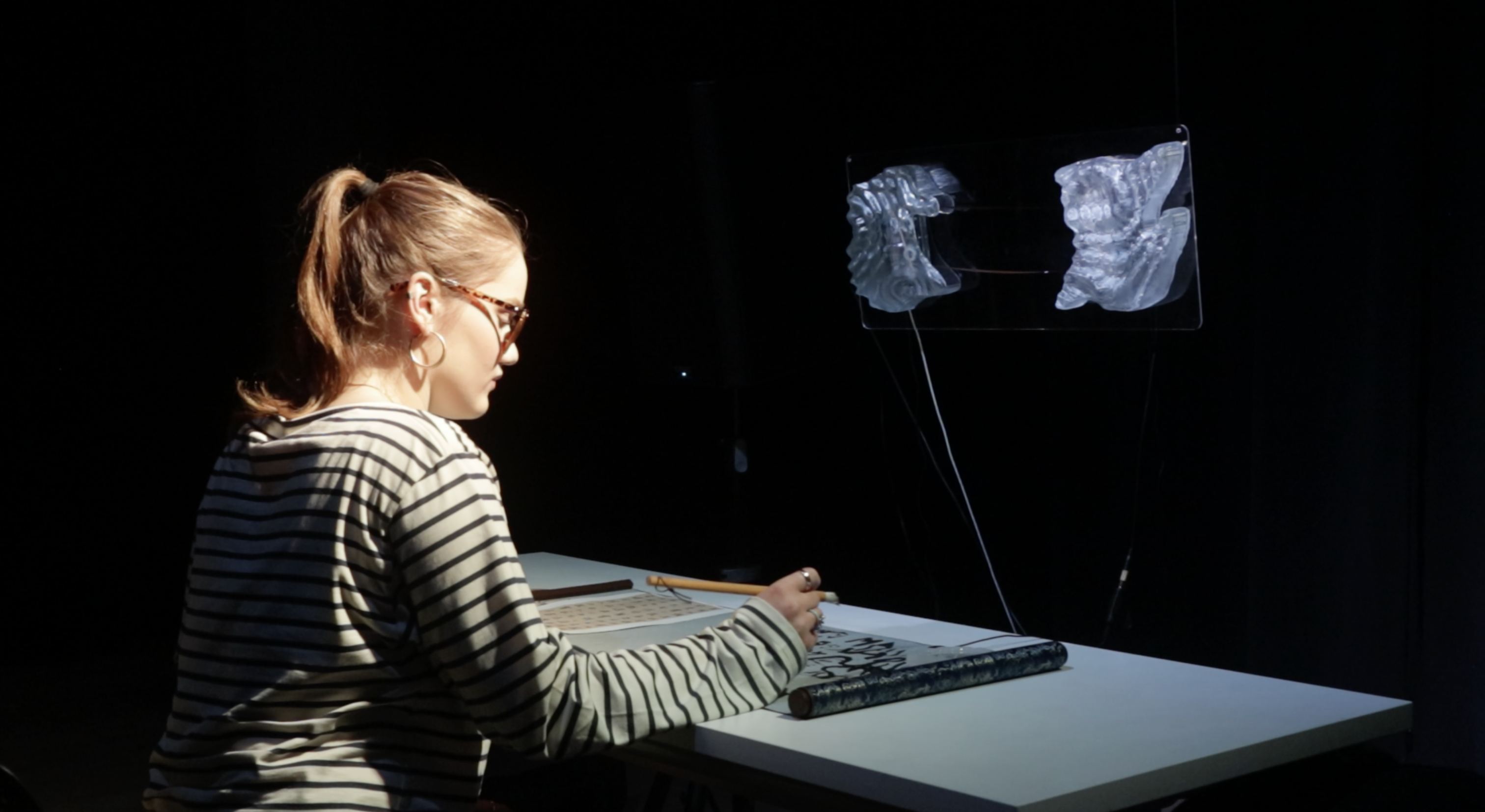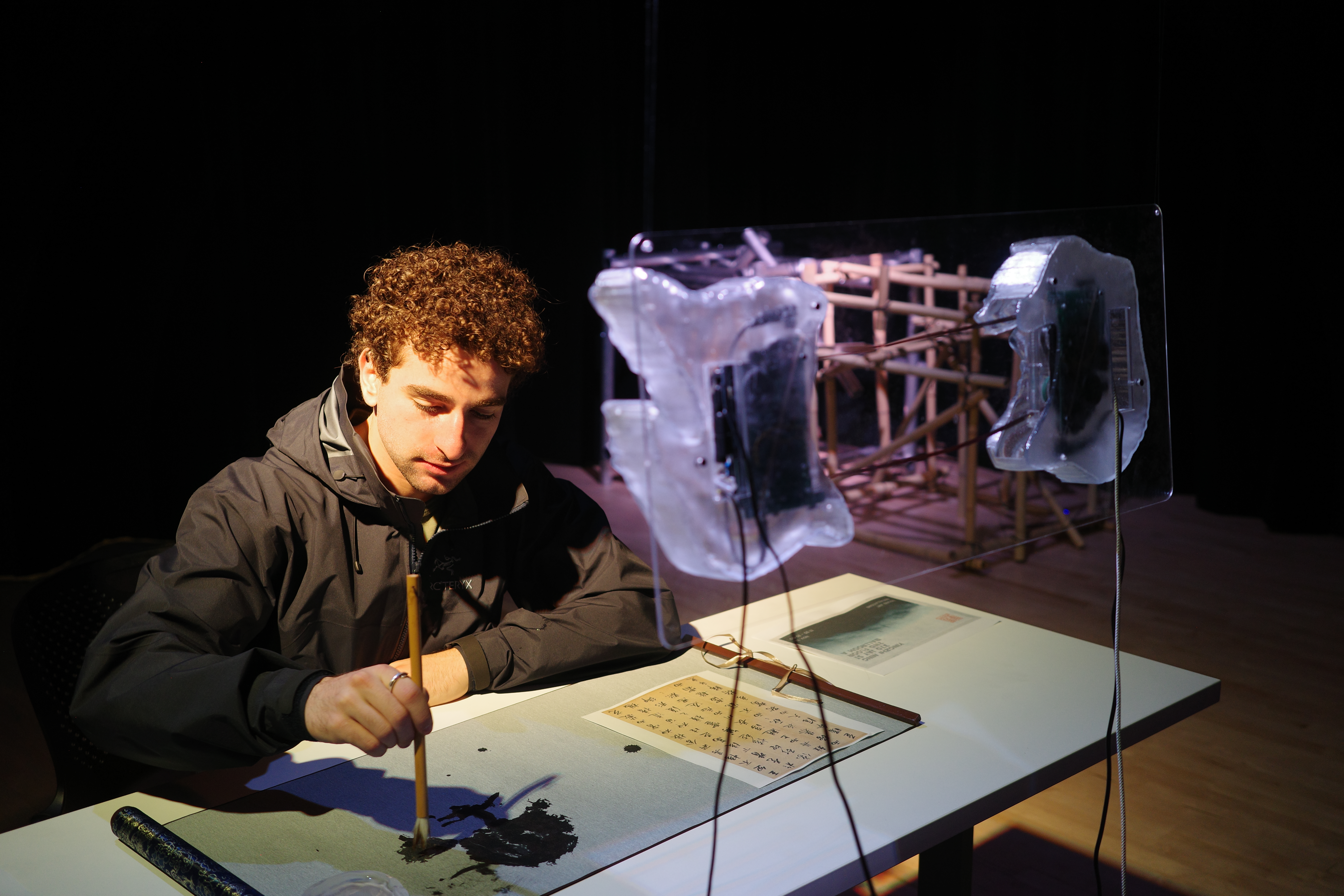Inspired by the works of philosophers, notably Christoph Cox and Gilles Deleuze, Allen’s research mainly focuses on utilizing sound as a physical and symbolic force to expand the boundaries of cultures with art and technology. This theme is prominent across his works, including sound installations Traces of Ripples and Stents, where he digs deep into the essence of calligraphy and presents it in ways that are relevant to today’s world music technology and design.